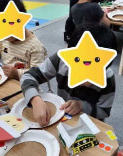 輪にたくさんお花紙を貼る子😊