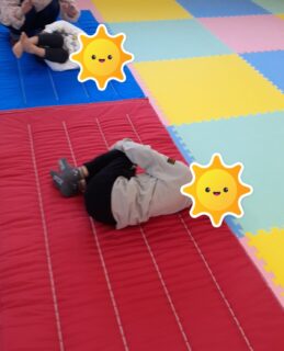 自分で揺れることが難しい子は、少し転がしてあげるとできていました🙌✨