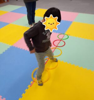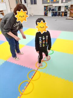 12月22日(月)の集団活動は横跳びフープジャンプをしました!
