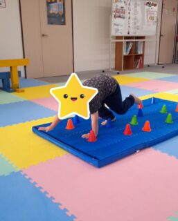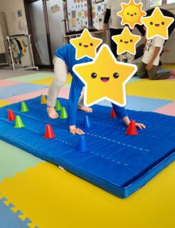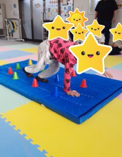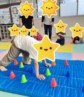 コーンに当たらないように手と足を置く場所を気をつけながら活動しています🤫