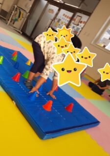 10月8日(水)の集団活動は障がい物クマ歩きでした🐻