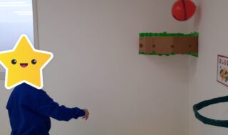 投げやすいように風船にテープを巻いて壁に取り付けたゴールに投げます⛹️✨