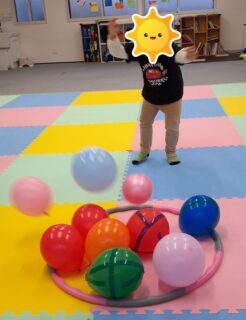 風船なので当たると勢いよく飛んでいって、見ていたお友達も楽しそうにしていましたよ😊