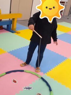 釣り竿の糸の先に磁石がついているため、ユラユラと揺れてすこし難しかったですがめげずにチャレンジしてくれましたよ🙌✨