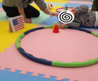 左側のフープにあるコーン▲を右側のフープに運びます。