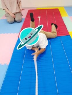 まずは、腕だけの力で進む練習。しっかり腕を動かすことで、体を支える力が育っていきます🌈