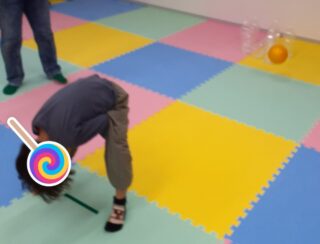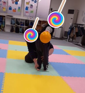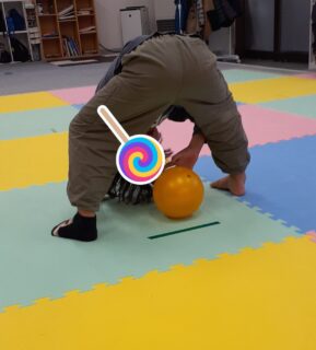 最初に股のぞきでボールを転がす練習をしました😊