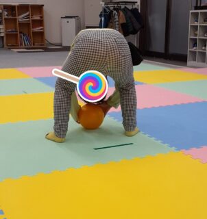 股のぞきが少し難しい子は後ろ向きから振り返って…「エーイ❢」