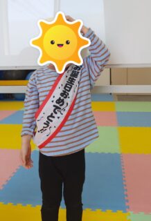 お誕生日の歌を「🎶ハッピーバースデートゥーユー🎶」と歌い、たすきをつけてお祝いをしました🎉